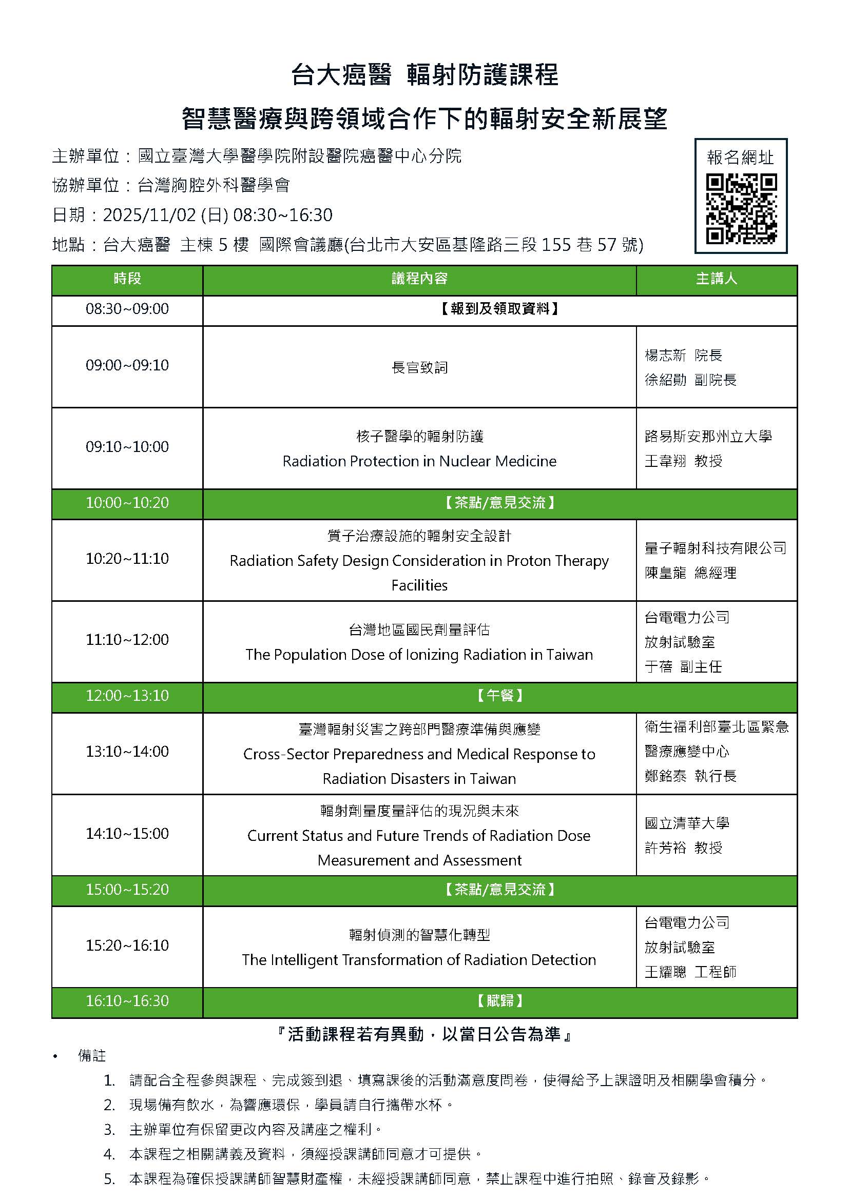 台大癌醫 輻射防護課程 智慧醫療與跨領域合作下的輻射安全新展望