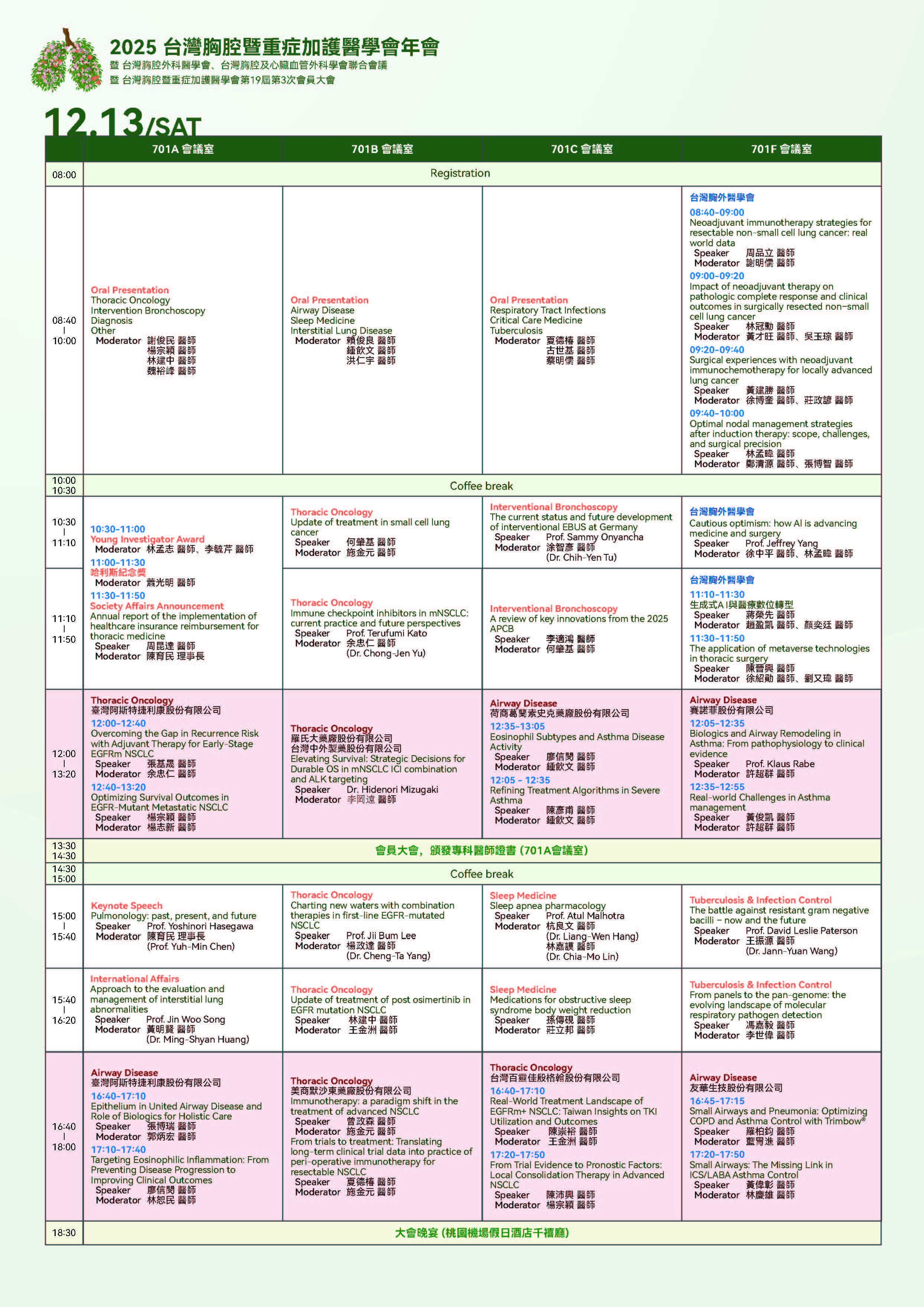 2025台灣胸腔外科醫學會冬季會 & 台灣胸腔暨重症加護醫學會年會 聯合學術研討會
