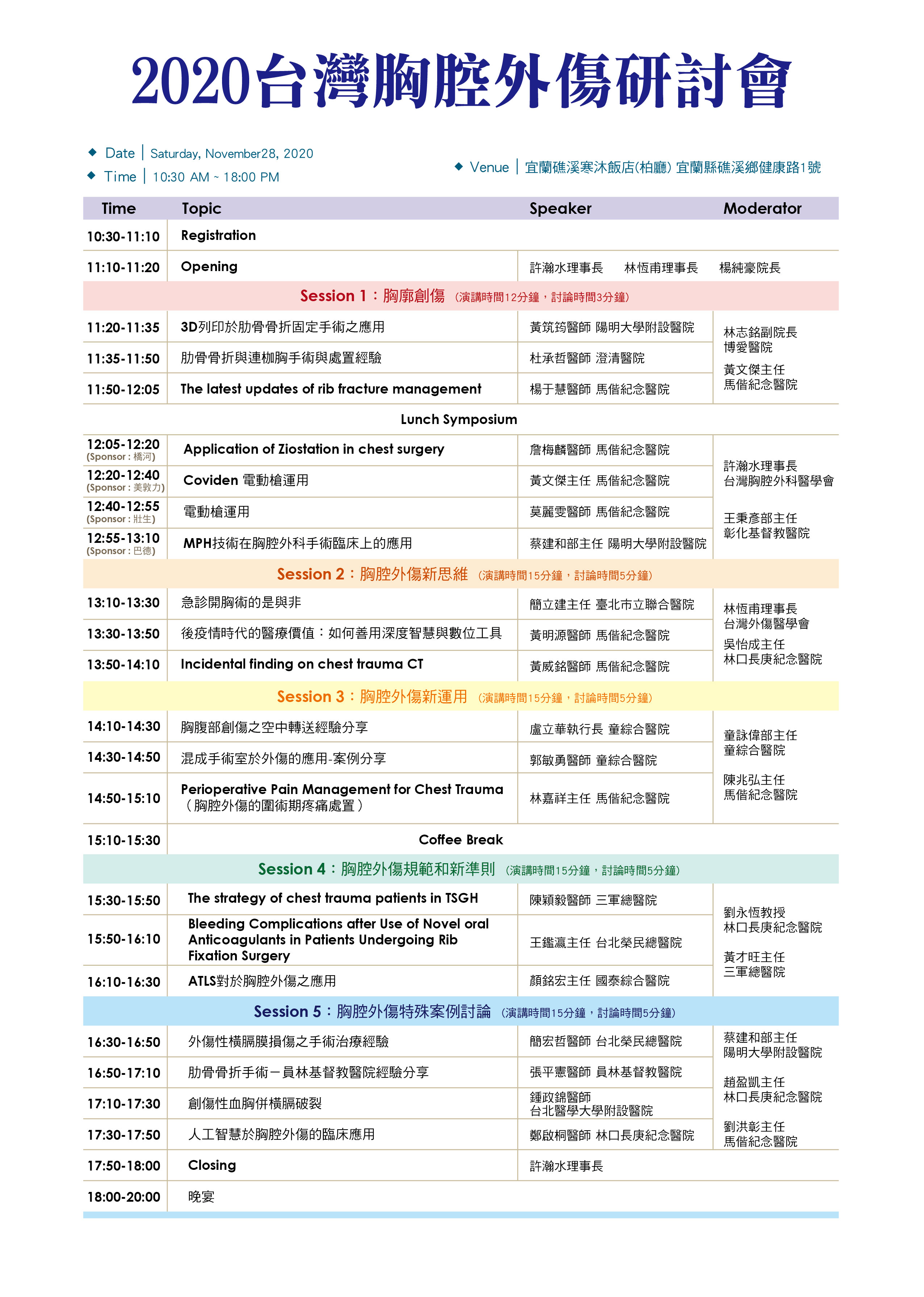 | 協辦單位 | 台灣外傷醫學會 . 台北馬偕紀念醫院 . 陽明大學附設醫院 . 陽明大學急重症醫學研究所 |