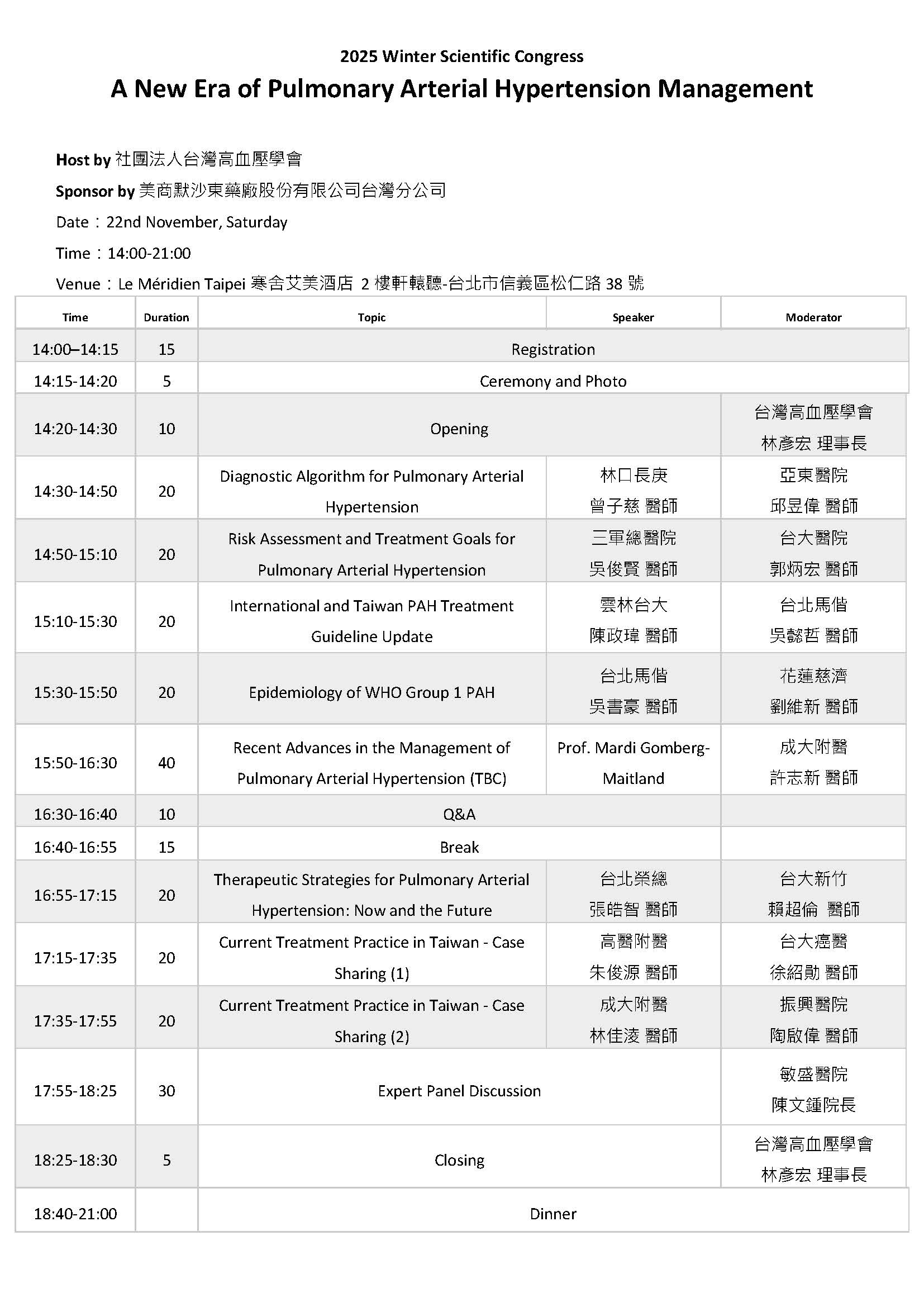| 主辦單位 | 社團法人台灣高血壓學會 |