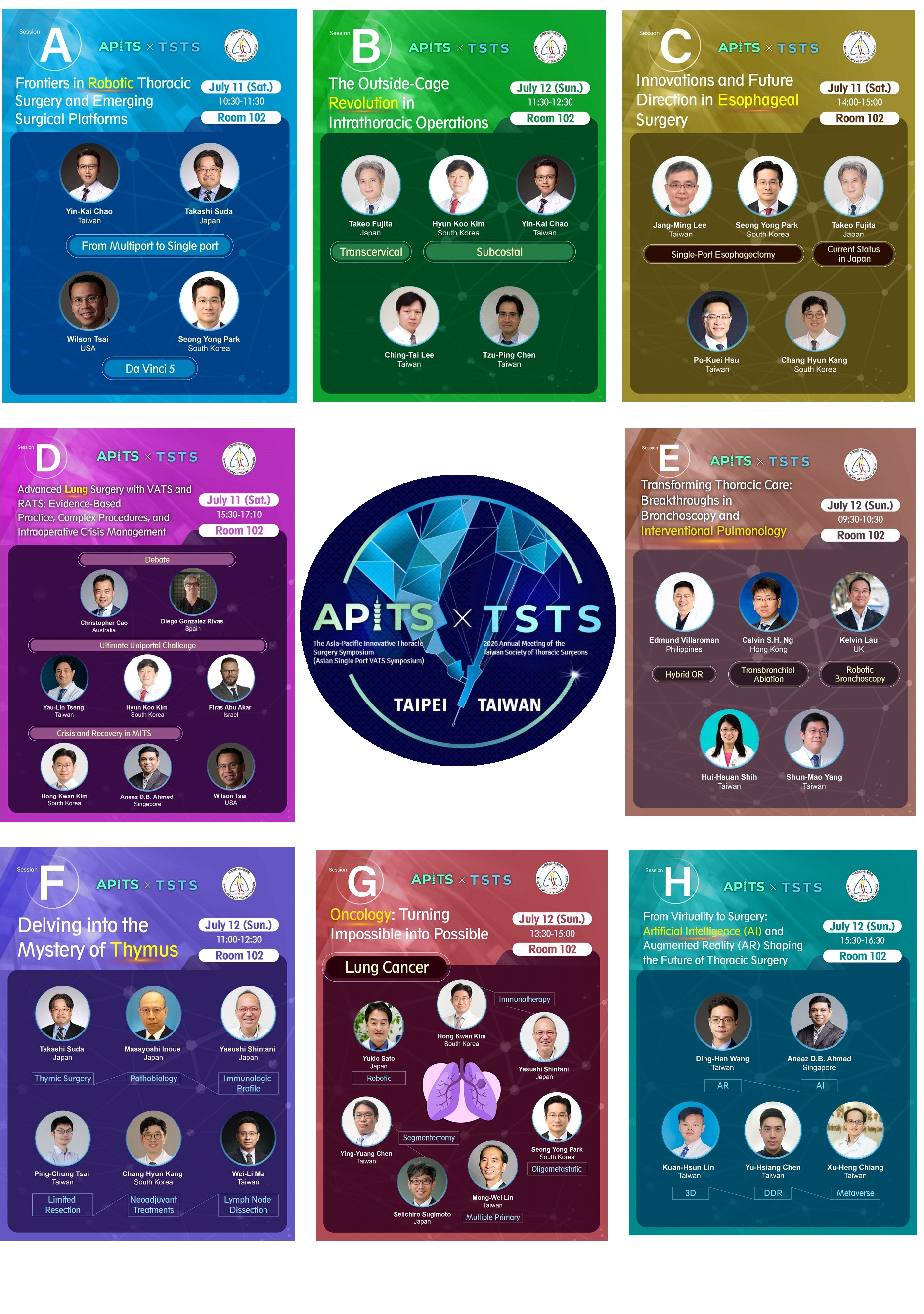 上述議題貼合胸腔外科中成長最快速的領域,包括機器人手術、數位手術、能量平台、影像與導航、介入肺醫、以及腫瘤相關技術等相關領域之新知與國際研究趨勢,內容精彩可期,更多講師陣容如下(點選照片可連APITS官網),敬請各位會員踴躍參加,共襄盛舉!