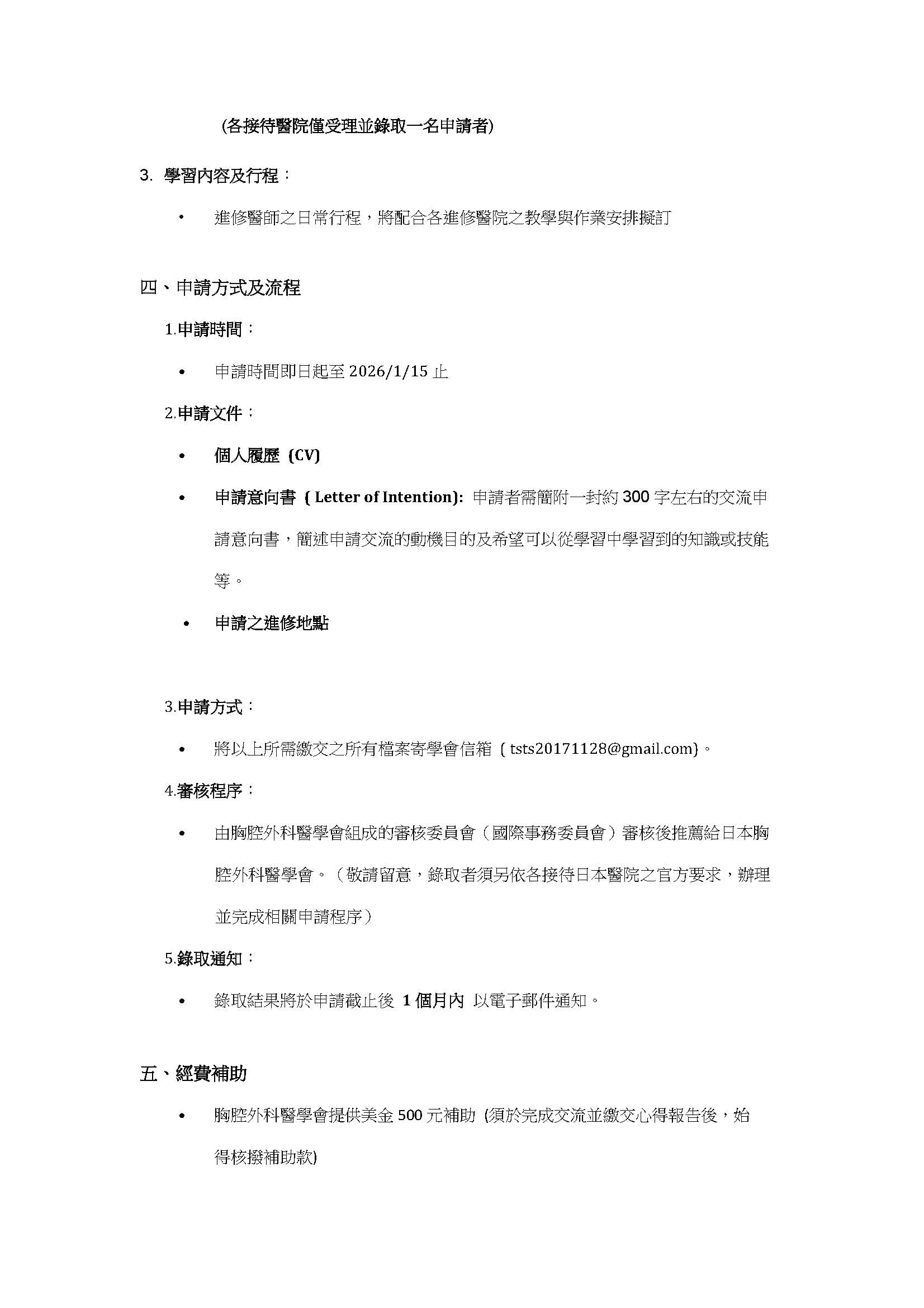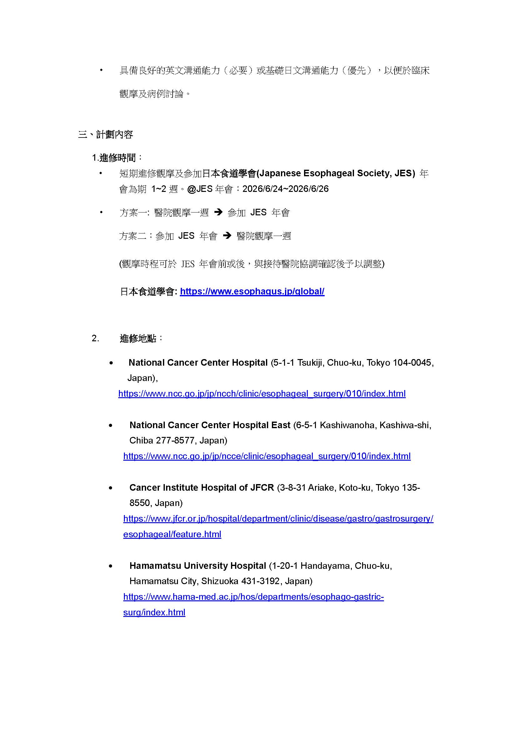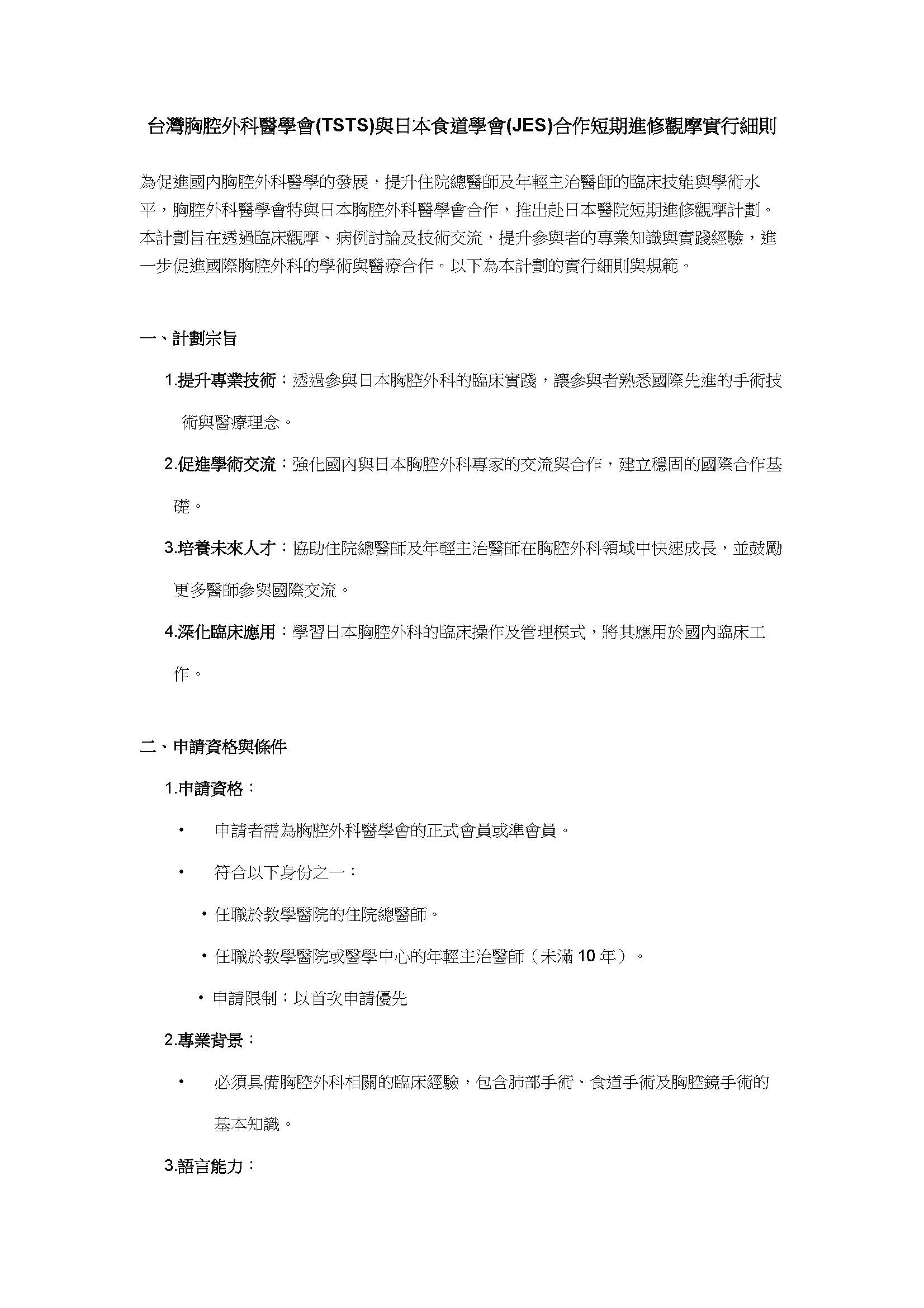 台灣胸腔外科醫學會與日本食道學會合作短期進修觀摩實行細則